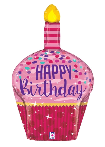 35" Multi-Sided Birthday Sparkles Cupcake Balloon