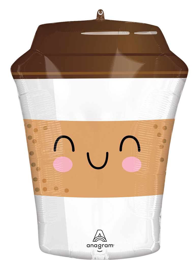 Globo de aluminio SuperShape Sippy Friends de 21 pulgadas con diseño de café para llevar