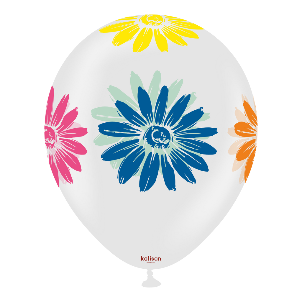 12" Kalisan 5 Color Print Colorful Flowers Clear Latex Balloons