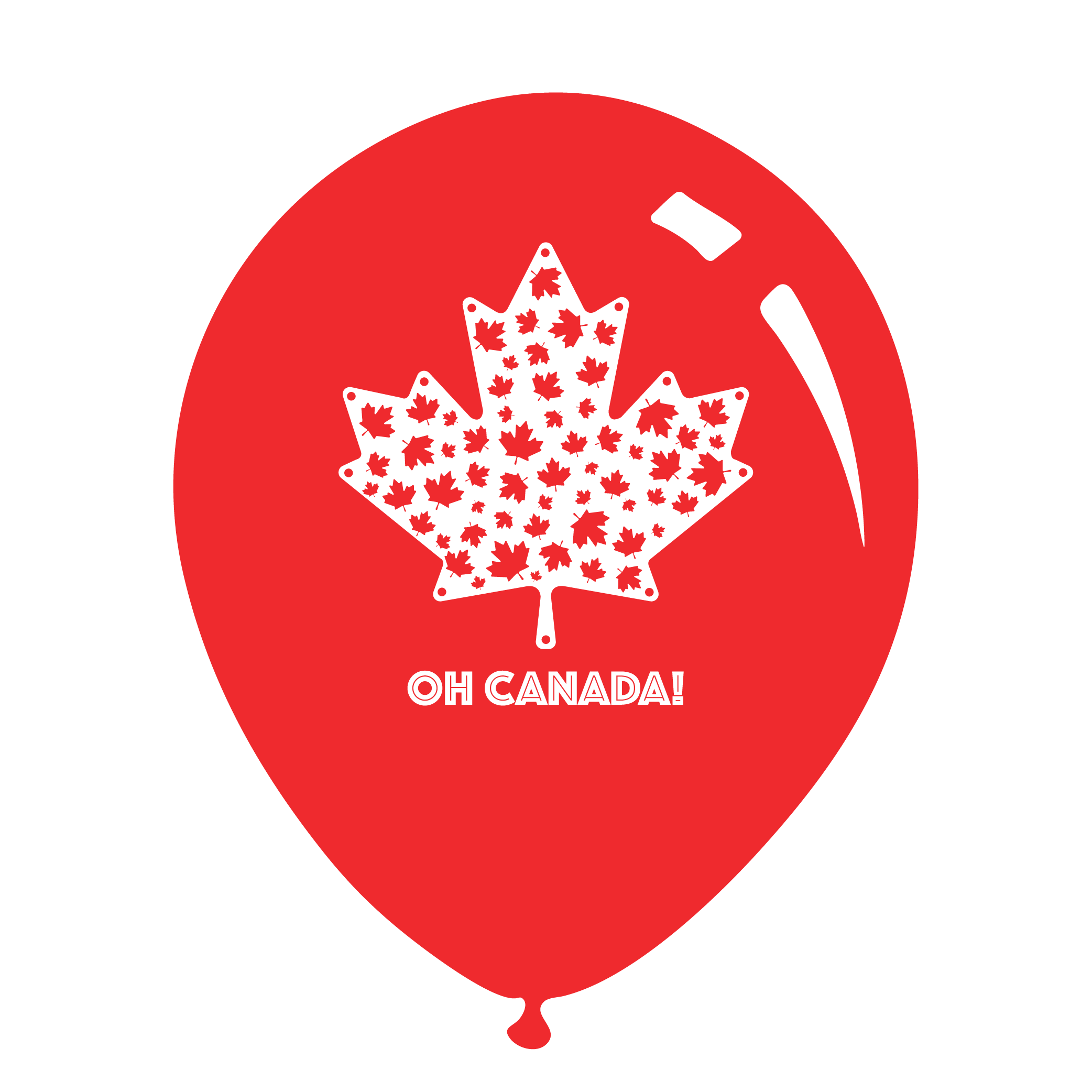 ¡Día de Canadá de 30 cm! ¡Impreso en Canadá! Globos de látex Decomex rojos con estampado blanco (25 por bolsa)