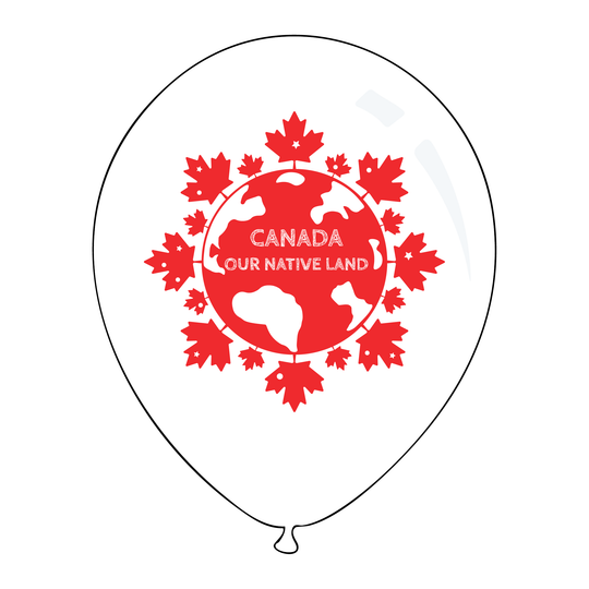 Globos de látex Decomex de 30 cm, con la imagen de "Nuestra Tierra Nativa", blancos con estampado rojo (25 por bolsa)