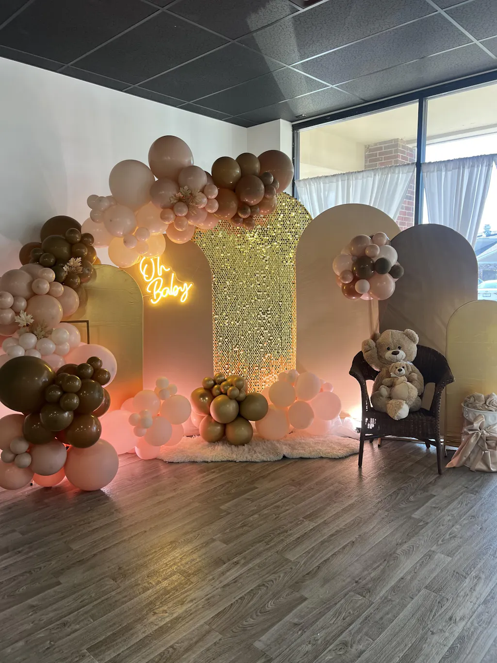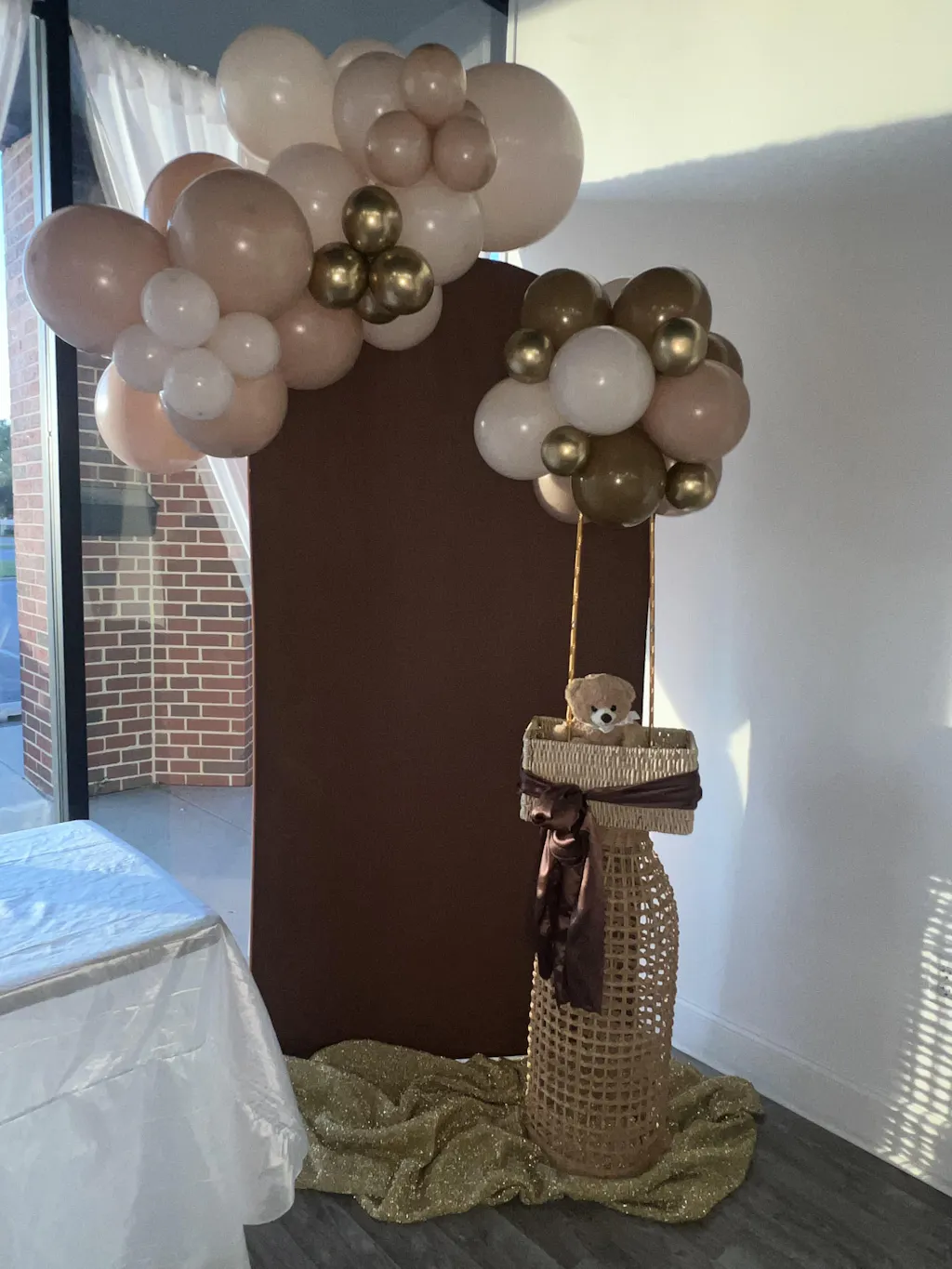 Globos de látex marrón mezclados con decoración pastel de Decomex