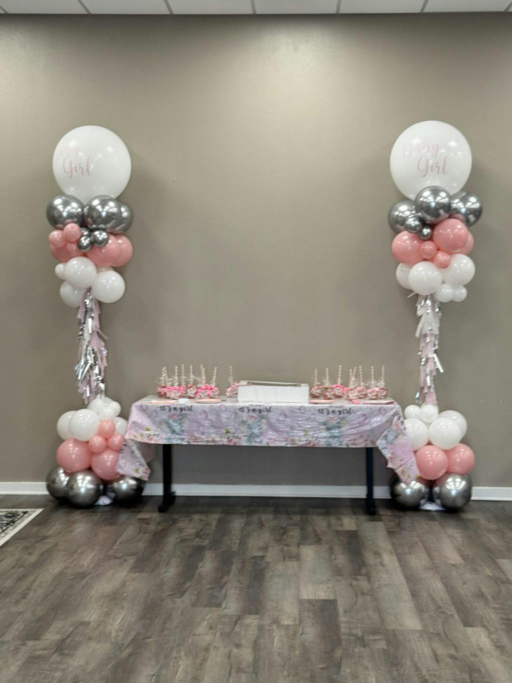Globos de látex plateados y grises.