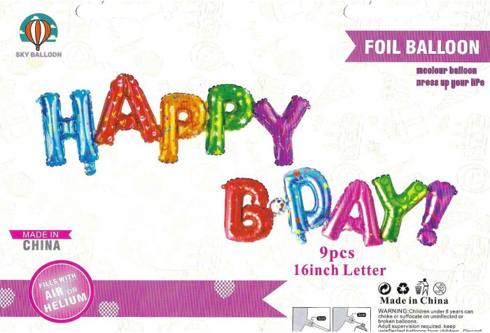 Celebrate in style with these vibrant 16" Airfill Only Happy B Day Multicolored Kit Foil Balloons. This set includes 9 foil balloons that spell out "HAPPY B-DAY!" in a colorful and eye-catching design. Each letter features a unique multicolored pattern, adding a festive touch to any birthday celebration. These balloons can be filled with air or helium for versatile decorating options. Perfect for creating a cheerful and lively atmosphere, these balloons are a must-have for your next birthday party!