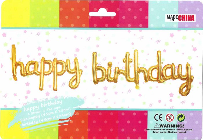 Celebrate in style with our 16" Airfill Only Happy Birthday Joint Gold Kit Foil Balloons. These eye-catching gold foil balloons spell out "happy birthday" in a fun and festive script. Perfect for adding a touch of elegance to any birthday celebration, these balloons are designed for air filling only and do not require helium. The "happy" balloon measures approximately 55cm x 35cm, while the "birthday" balloon measures approximately 45cm x 124cm. Please note that this product is not suitable for children under 3 years due to small parts posing a choking hazard. Make your birthday party unforgettable with these stunning gold foil balloons!