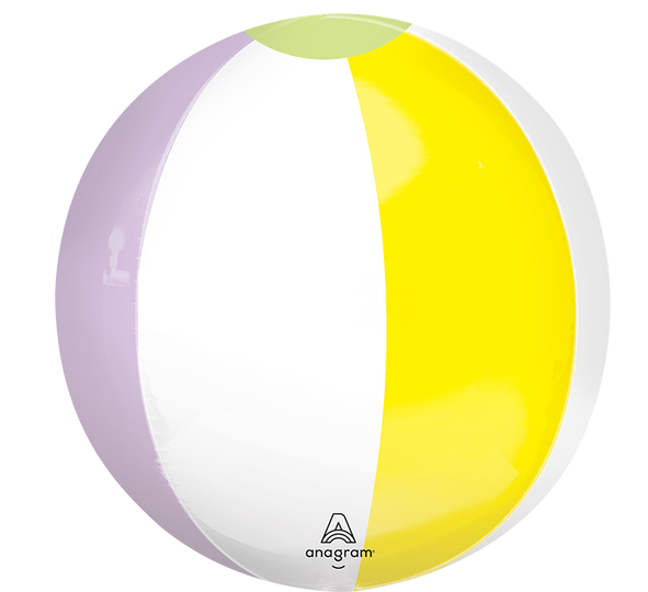 Brighten up your party with the 16" Orbz Clear Pastel Beach Club Foil Balloon. This eye-catching balloon features a classic beach ball design with alternating pastel panels in soothing shades of yellow, white, blue, purple, and pink. Perfect for beach-themed parties or summer celebrations, this balloon adds a fun and festive touch to any event. The high-quality foil material ensures it stays inflated longer, making it a great decoration for both indoor and outdoor gatherings.