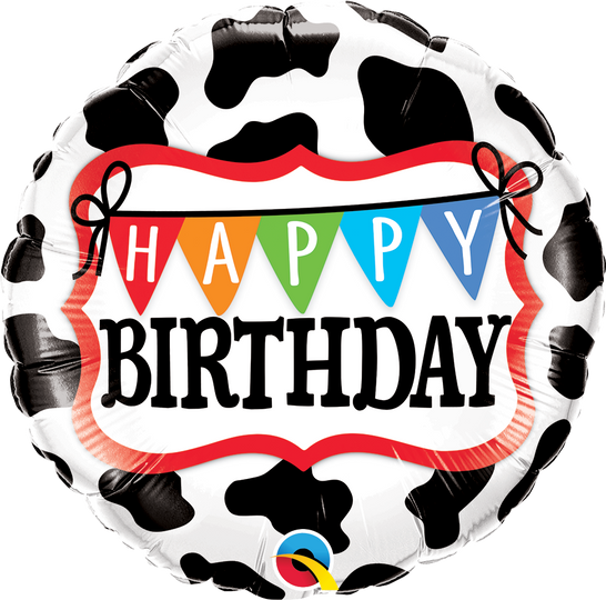 Globo de aluminio con patrón de vaca Holstein Feliz cumpleaños de 18"