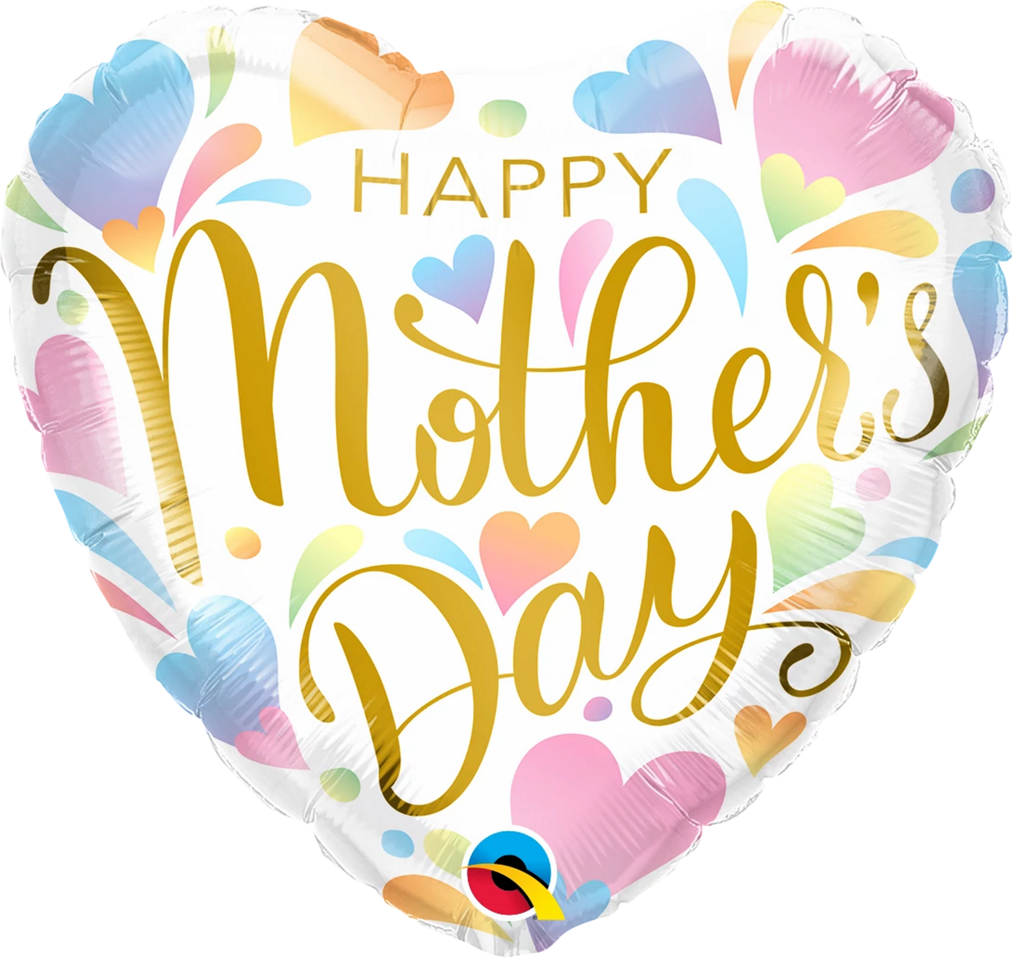 Celebrate Mother's Day with this charming 18" Heart Mother's Day Pastel Hearts Foil Balloon. This heart-shaped balloon features a delightful pastel design with colorful hearts and teardrops in shades of pink, blue, green, and yellow. The message "Happy Mother's Day" is elegantly displayed in gold script, making it a perfect addition to any Mother's Day celebration. Ideal for decorating or as a thoughtful gift to show appreciation for the special mothers in your life.
