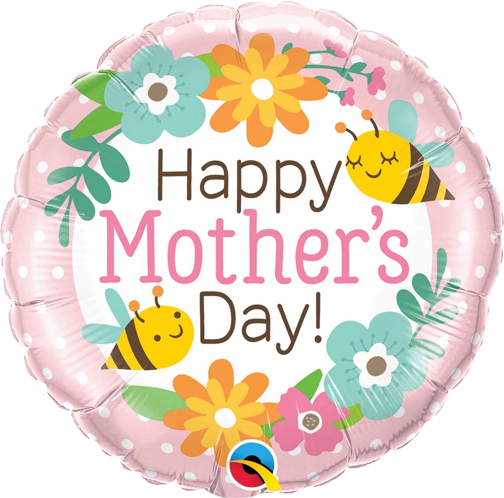 Globo metálico redondo de 18" con diseño de abejas y flores para el Día de la Madre