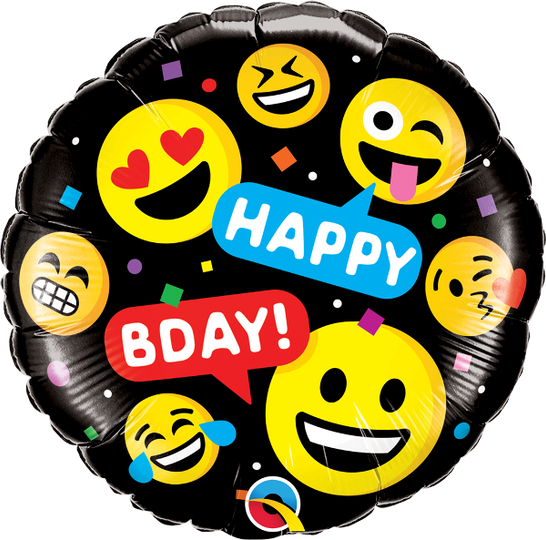 Globo de aluminio redondo Happy Bday con emoticones de 18"