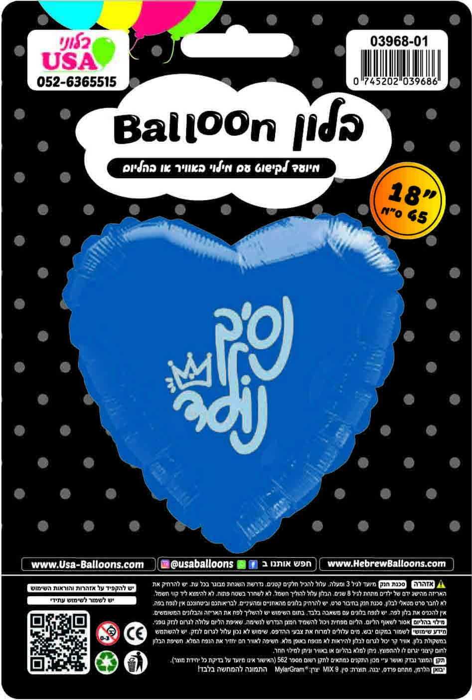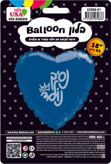 Globo de aluminio hebreo con forma de corazón y corona "Ha nacido un príncipe" de 18"