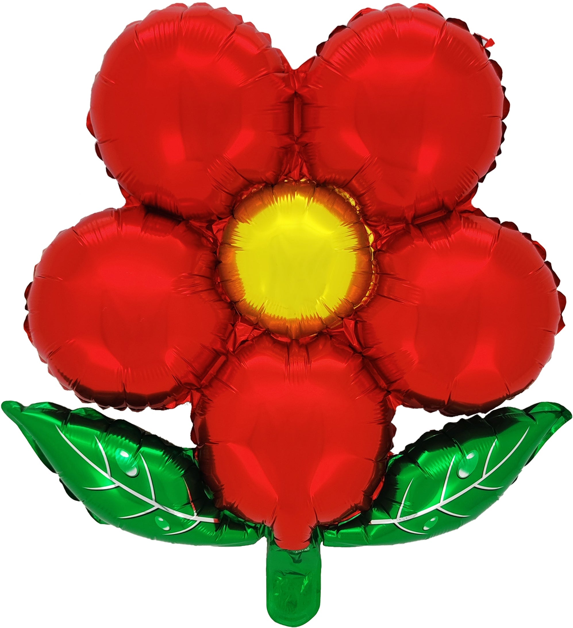 Brighten up any celebration with this vibrant 18" Airfill Only Flower Foil Balloon. Designed to resemble a beautiful flower, this balloon features five radiant red petals surrounding a sunny yellow center. The green leaves at the base add a touch of natural charm, making it perfect for birthdays, garden parties, or any festive occasion.