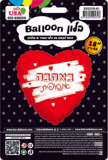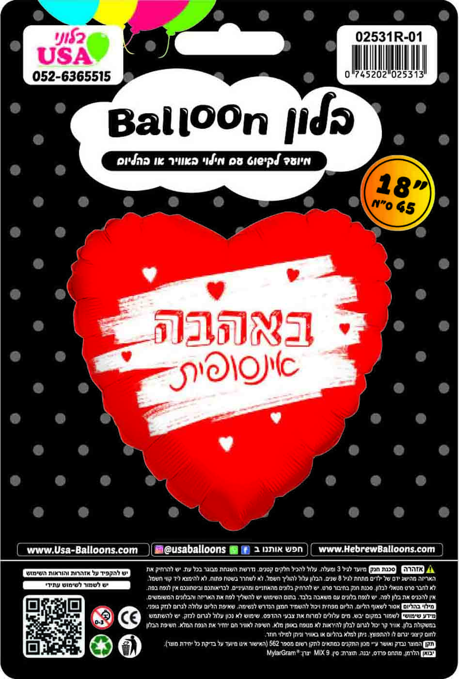 Globo de aluminio hebreo con corazón rojo "Amor infinito" de 18"
