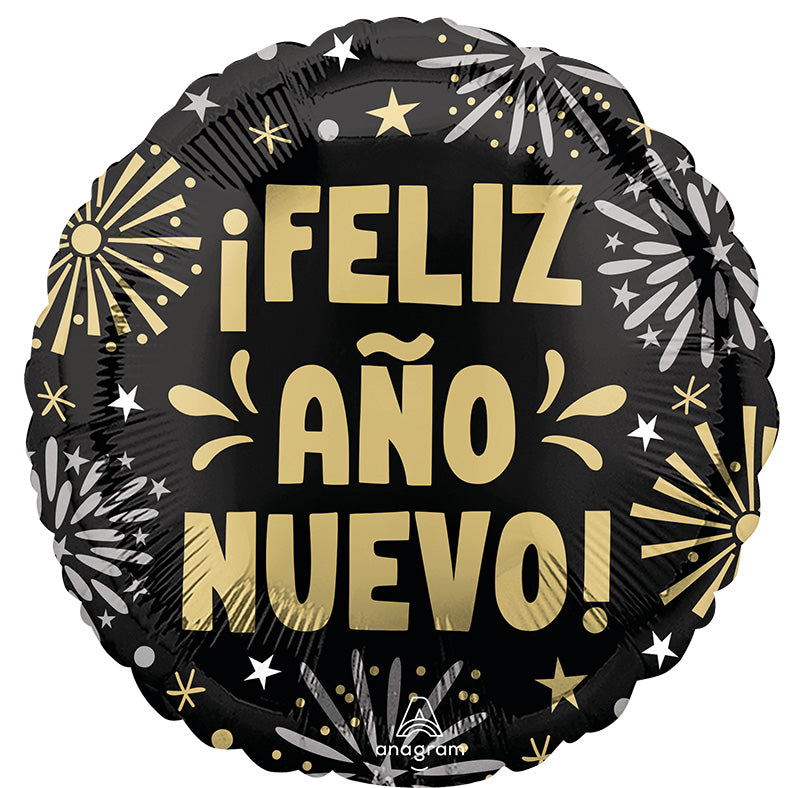 Globo de aluminio con fuegos artificiales Feliz Año Nuevo de 18"
