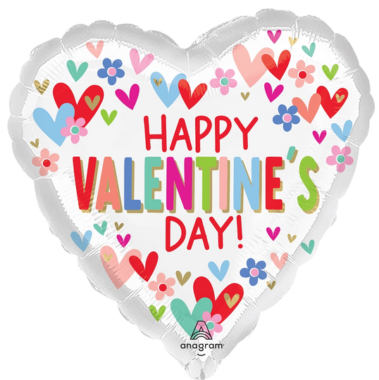 Globo de aluminio de 18" con corazones y margaritas "Feliz Día de San Valentín"