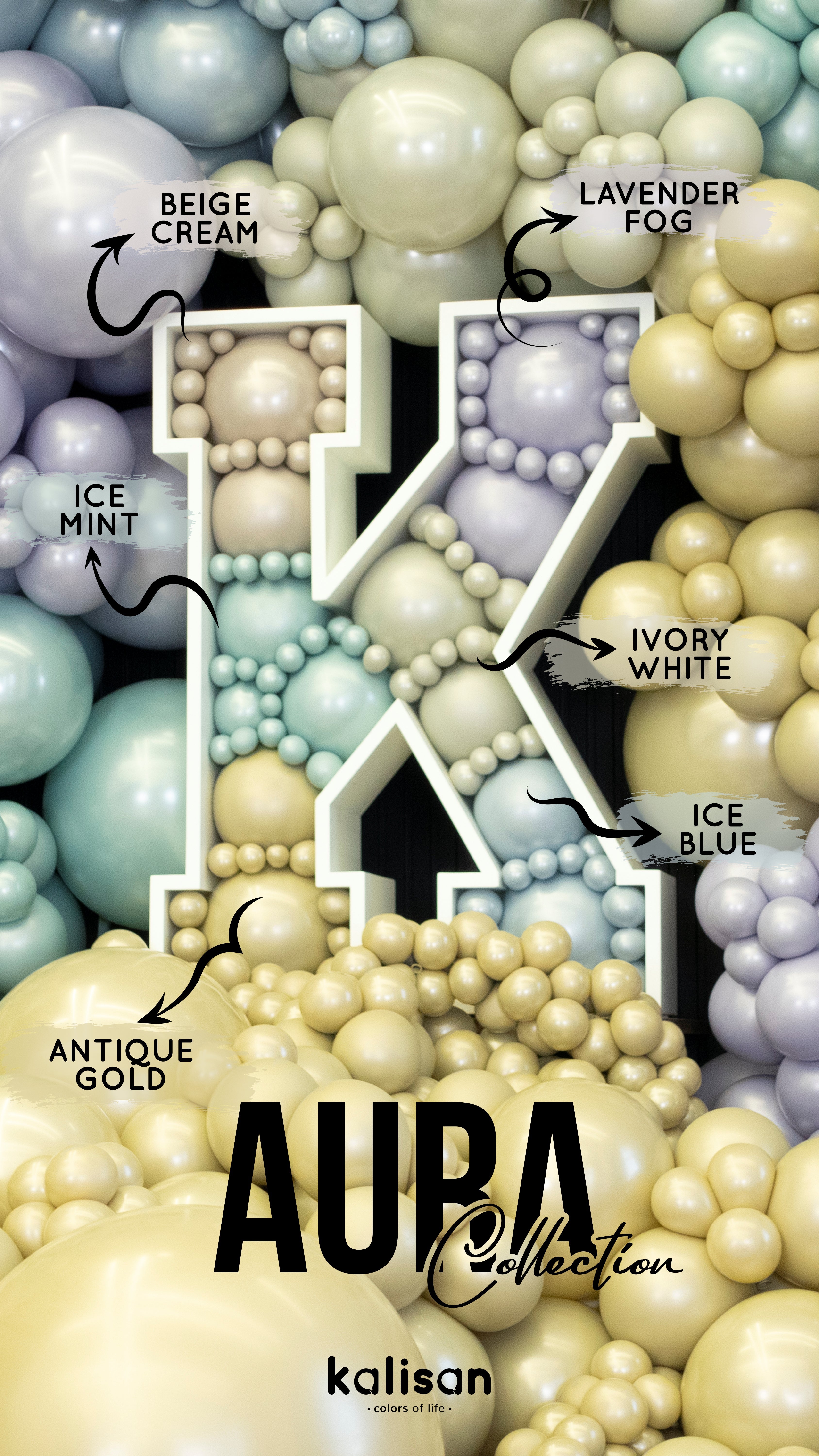 Globos de látex de 5" de la marca Kalisan, color beige crema aura (50 por bolsa)