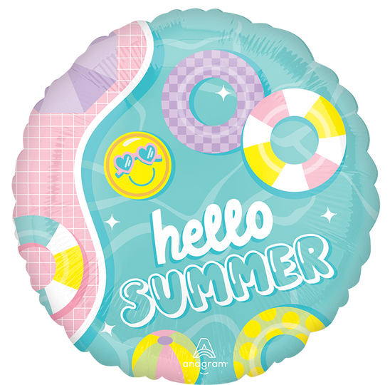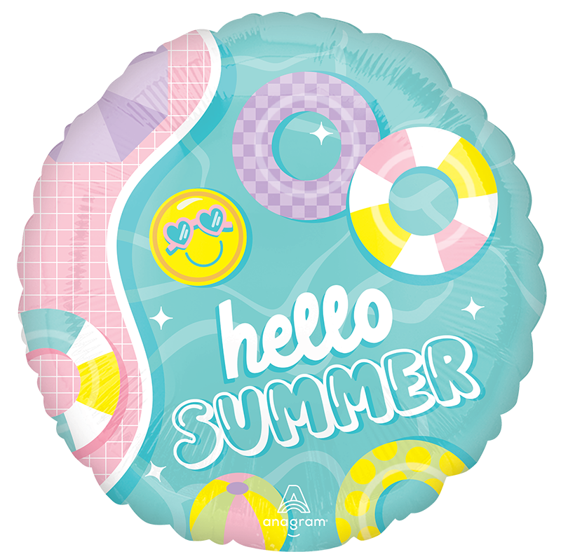 18" Standard Pastel Beach Club Hello Summer Foil Balloon