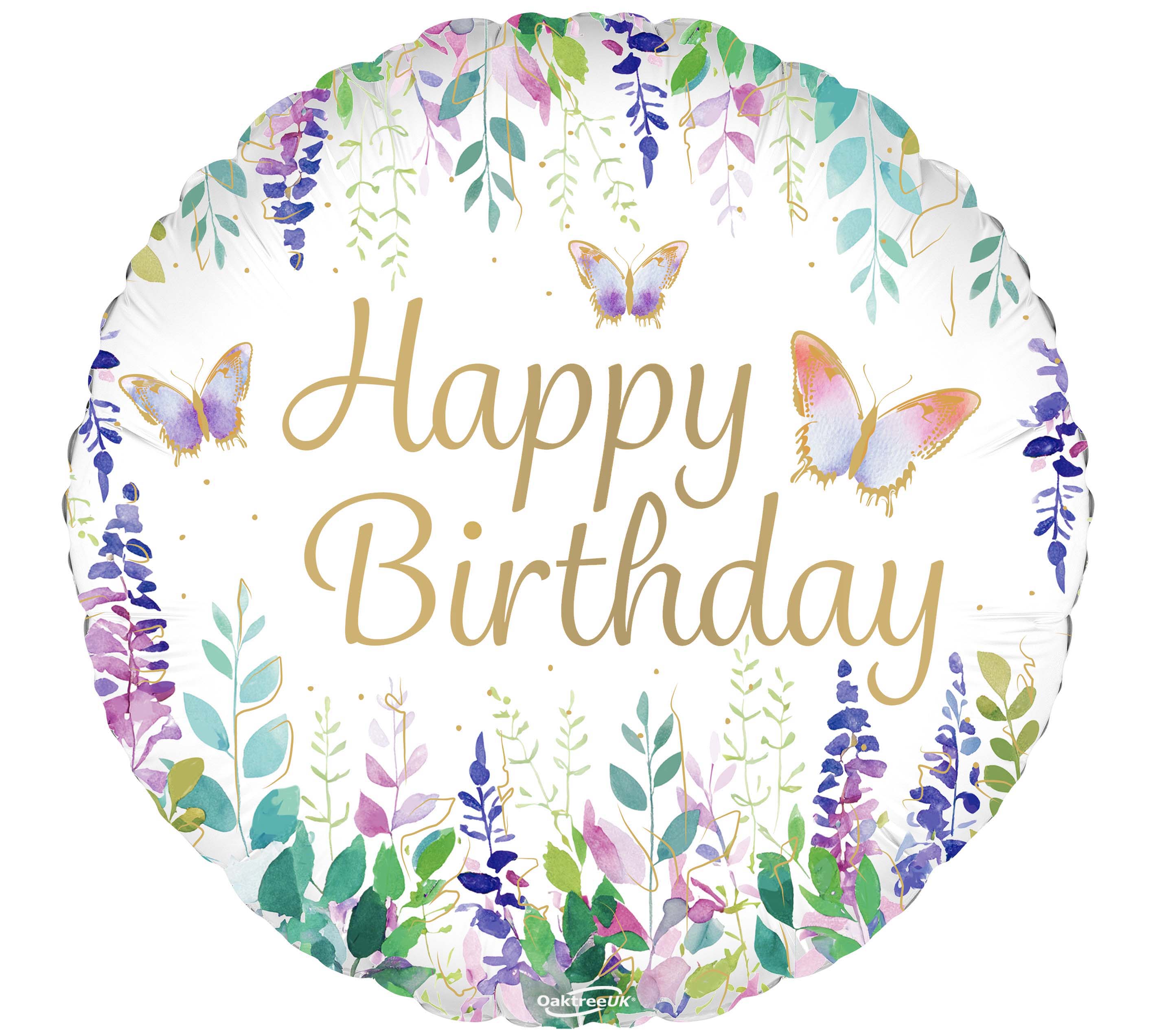 18" Happy Birthday Watercolour Floral Metallic Oaktree Brand Foil Balloon