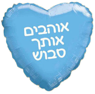 This 18" We Love You Grandpa Blue Heart Hebrew Foil Balloon is a perfect way to show your love and appreciation. The balloon features a heart shape with a beautiful blue color. The design includes the Hebrew phrase "אוהבים אותך סבוש" which translates to "We Love You Grandpa." This foil balloon is ideal for celebrations, special occasions, or just to make your grandpa feel special.