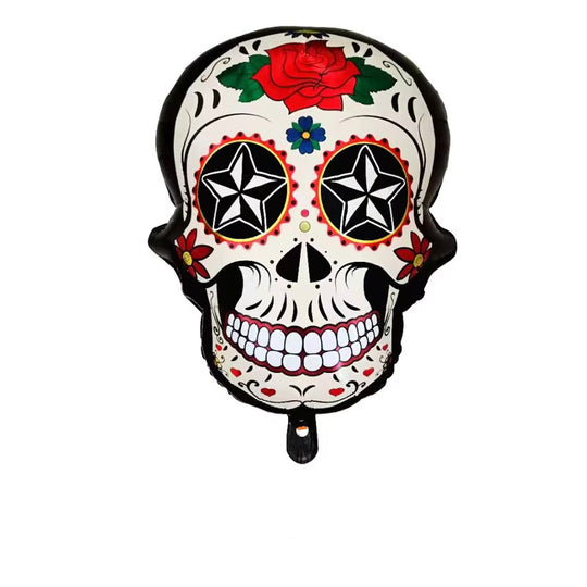 25" Sugar Skull Day Of The Dead (Dia De Los Muertos) Red Rose Foil Balloon