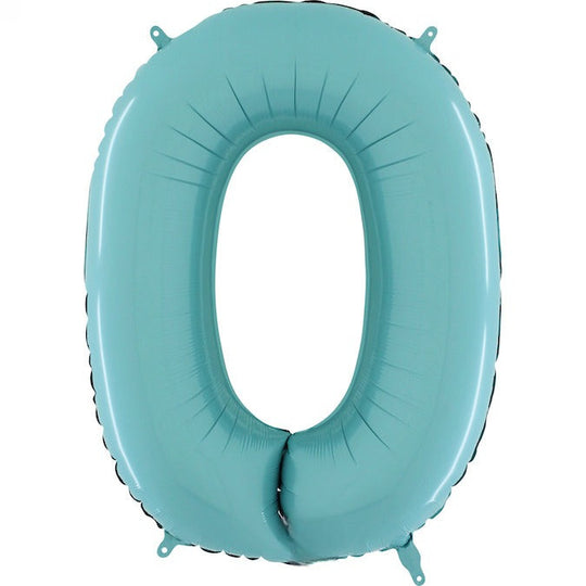 Globo de tamaño mediano de 26" con forma de aluminio, número 0, azul pastel