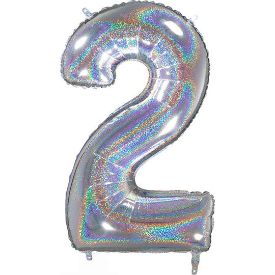 Globo de tamaño mediano de 26" con forma de aluminio, número 2, plateado holográfico