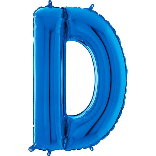 Globo de aluminio azul con forma de letra D de tamaño mediano de 26"