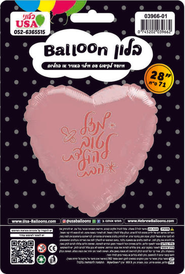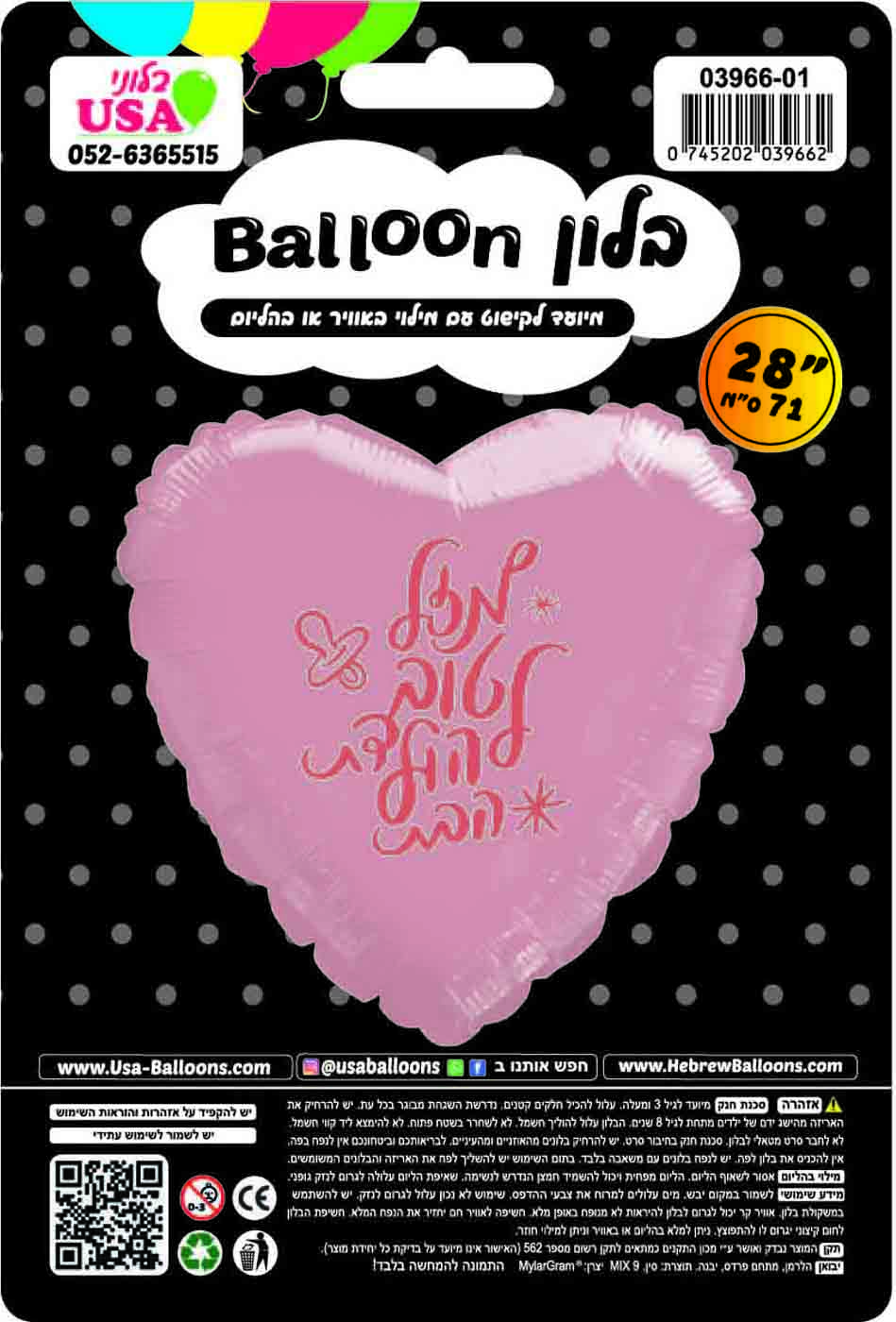Globo de aluminio hebreo con forma de corazón rosa para niña Mazel Tov de 28"