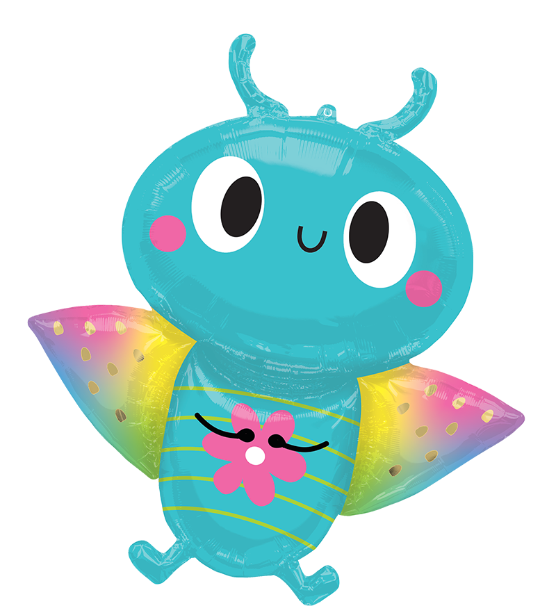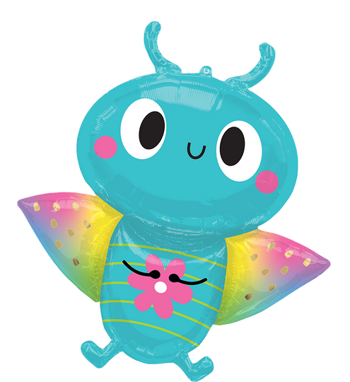 Bring joy to any celebration with this 31" SuperShape Happy Beetle Foil Balloon. This adorable balloon features a vibrant design of a cheerful beetle with a bright blue body, large expressive eyes, and rosy cheeks. The beetle's wings are a stunning gradient of pink, yellow, and green, adorned with gold dots, adding a touch of whimsy. Perfect for birthdays, parties, or any special occasion, this balloon is sure to bring smiles and delight to everyone!