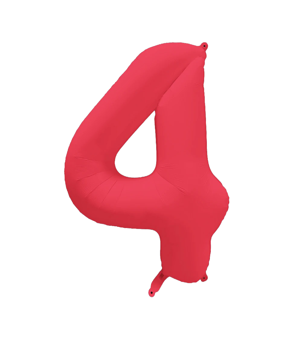 34" Deco Number 4 Neon Red Balloon