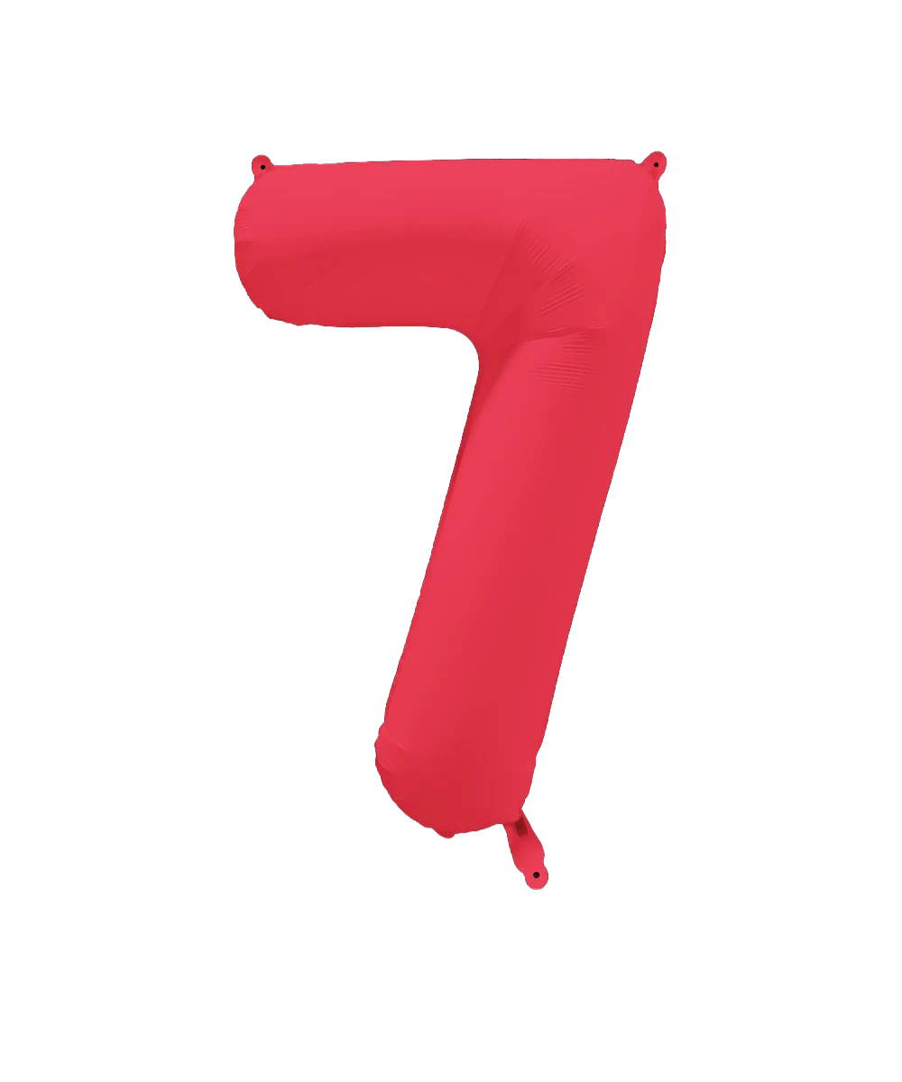 34" Deco Number 7 Neon Red Balloon
