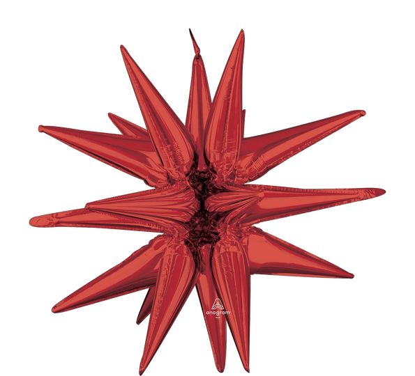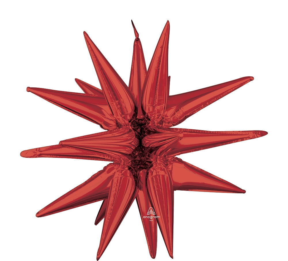 Enhance your celebrations with this 35" Multi-Balloon Magic Star. This large red foil balloon features a striking star shape, composed of multiple pointed segments that create a dynamic and festive design. Perfect for birthdays, anniversaries, or any special event, this balloon adds a touch of elegance and fun to your decor.