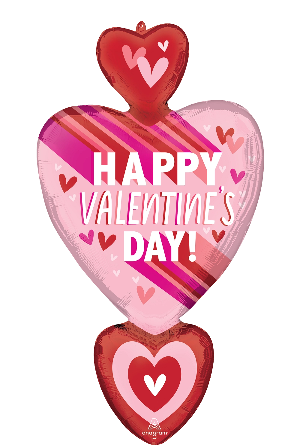 Globo de aluminio gigante de 38" con corazones y rayas de Feliz Día de San Valentín