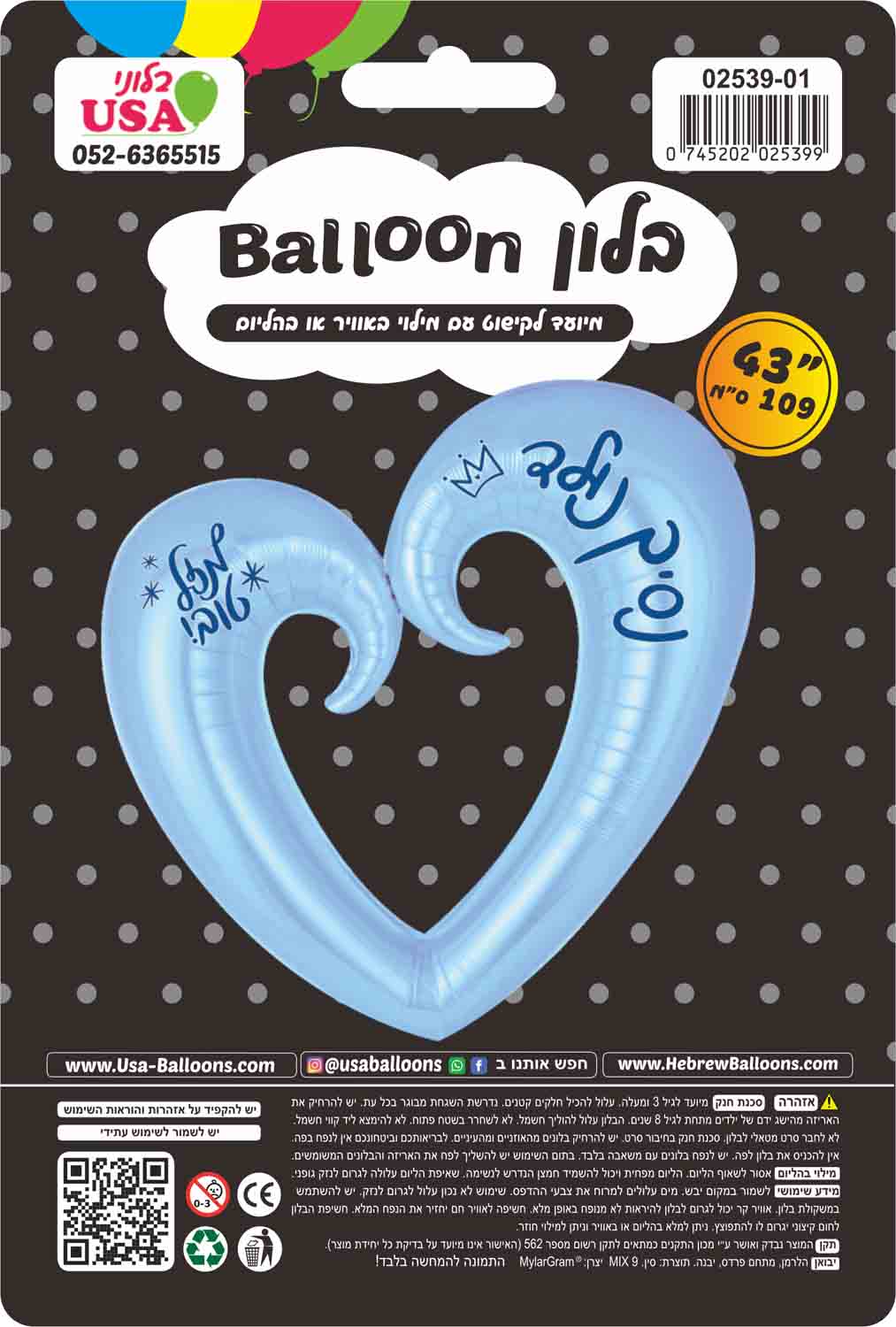 Globo de aluminio hebreo Mazel Tov Baby Boy de 43 pulgadas con corazón abierto azul