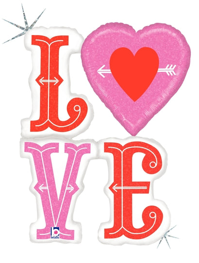 Globo holográfico de aluminio con forma de corazón y flechas LOVE de 46"