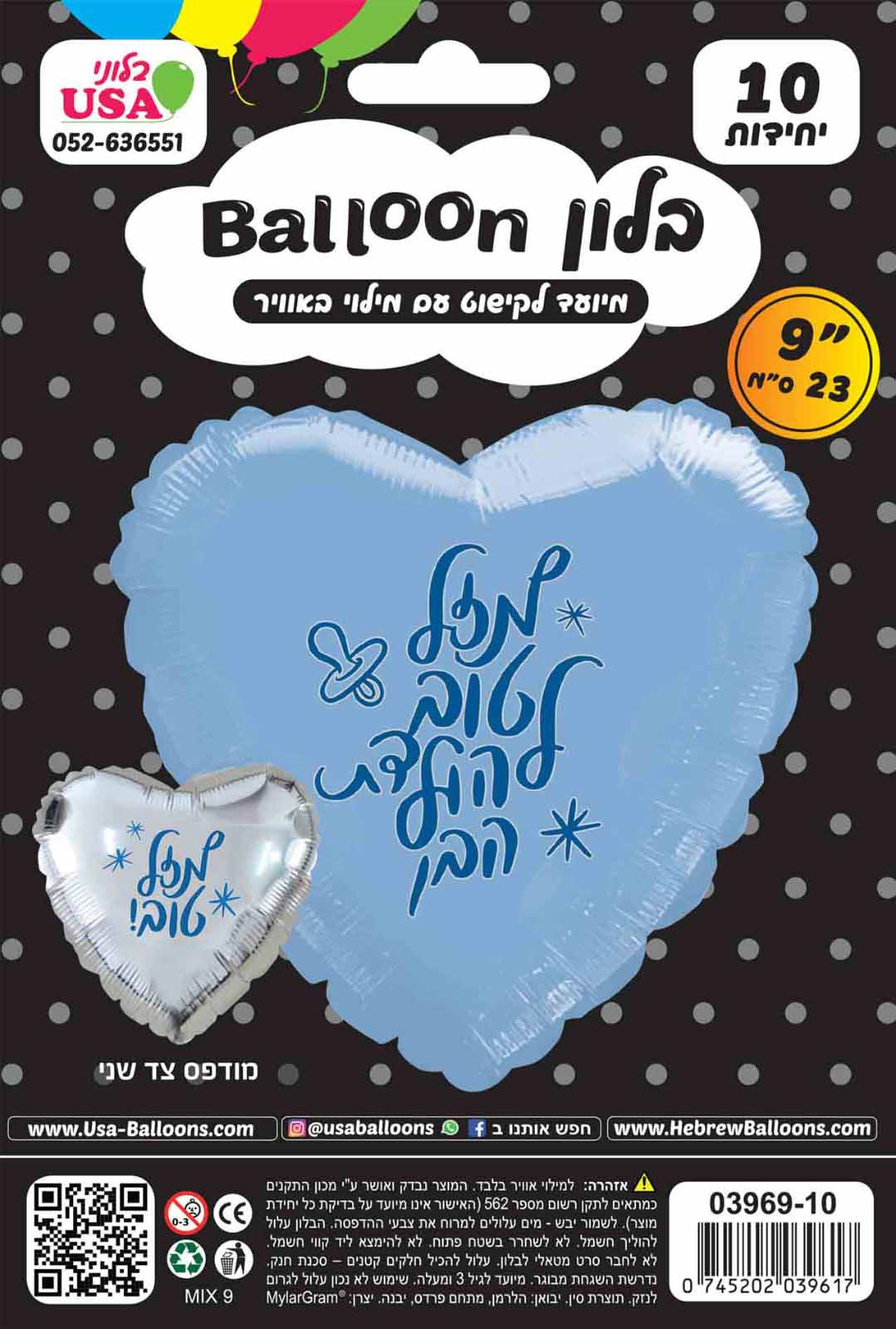 Globo de aluminio hebreo Mazel Tov Baby Boy azul/plateado de 9 pulgadas, relleno de aire