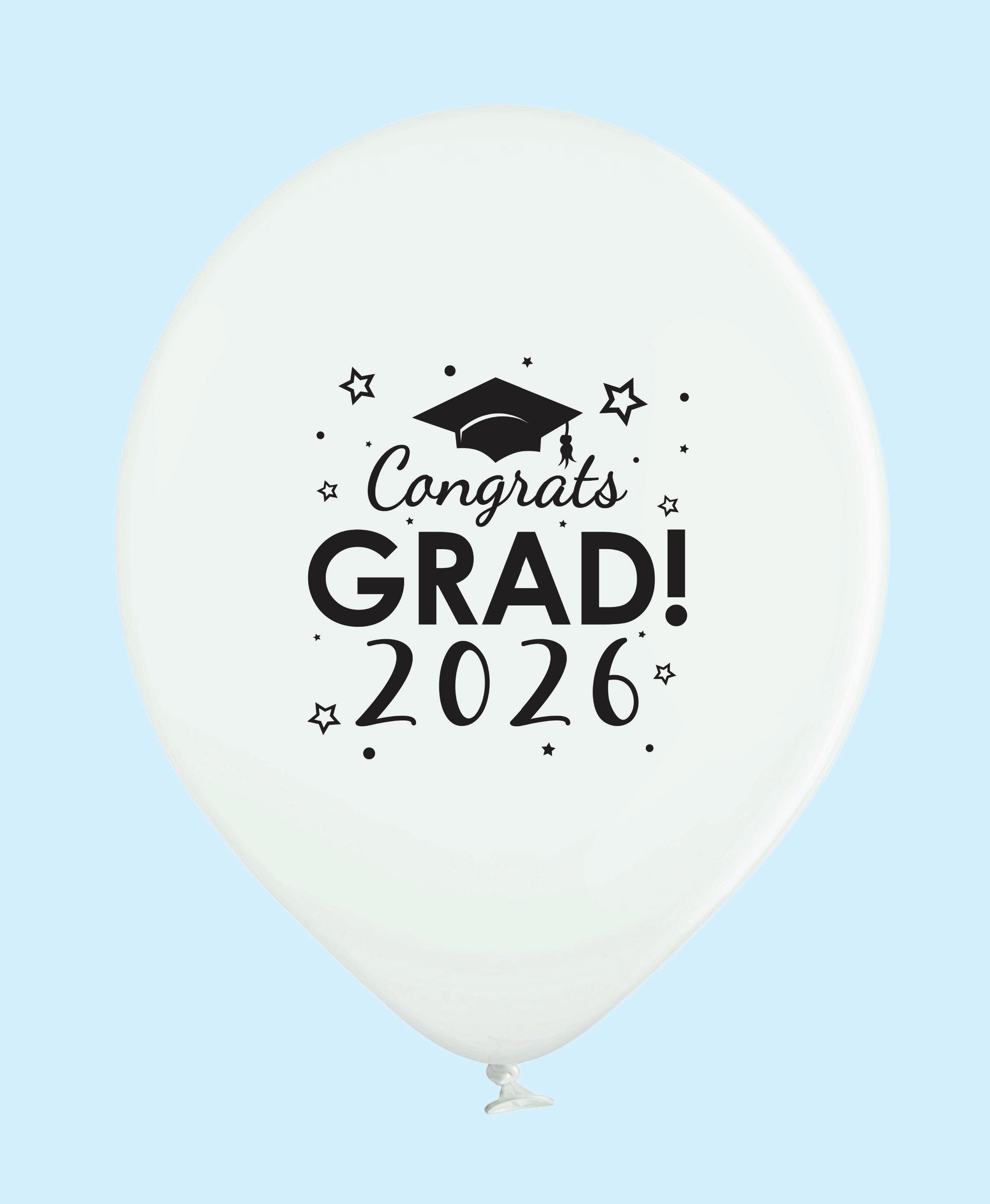 11" Congrats Grad 2026 Printed Latex Balloons 25 Count White