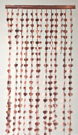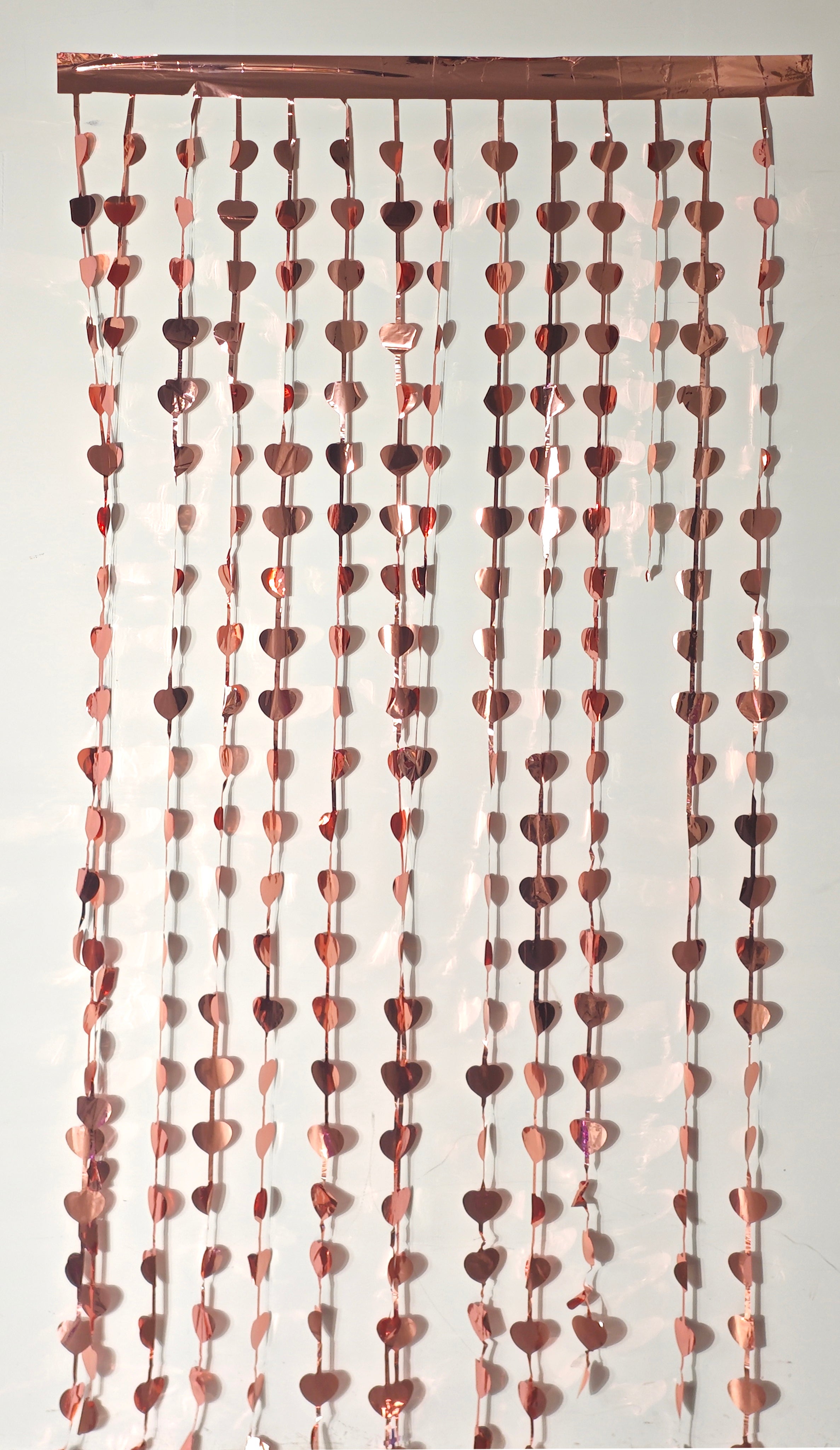 Telón de fondo de cortina con forma de corazón, con flecos y oropel, de 1,98 m x 1 m, en MylarGram, color oro rosa