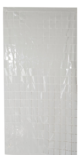 Telón de fondo de cortina rectangular con flecos de aluminio y oropel de 6,5 pies x 3,25 pies, MylarGram blanco