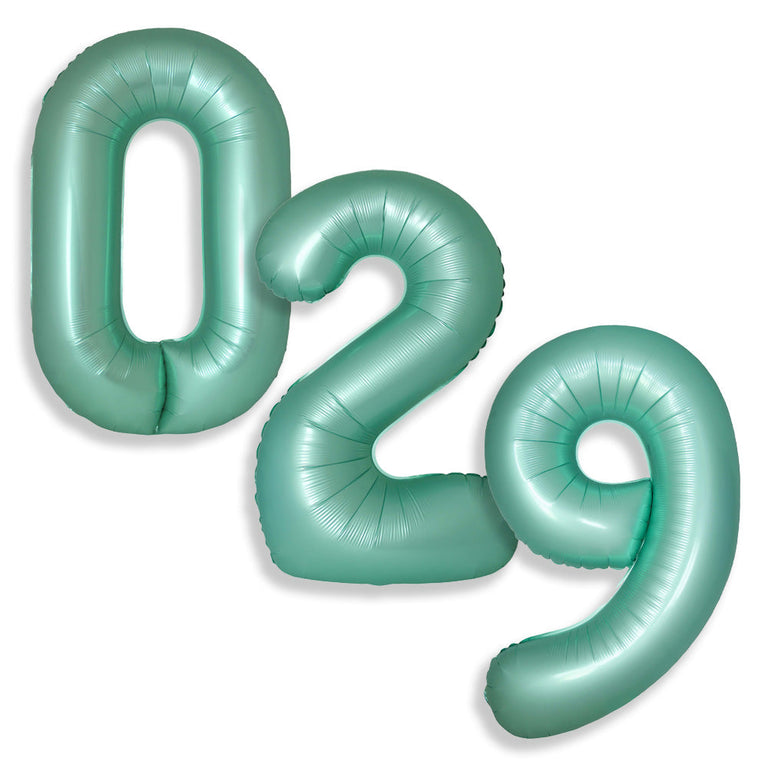 Ballons en forme de chiffres minces turquoise satiné de marque Flexmetal de 32 pouces