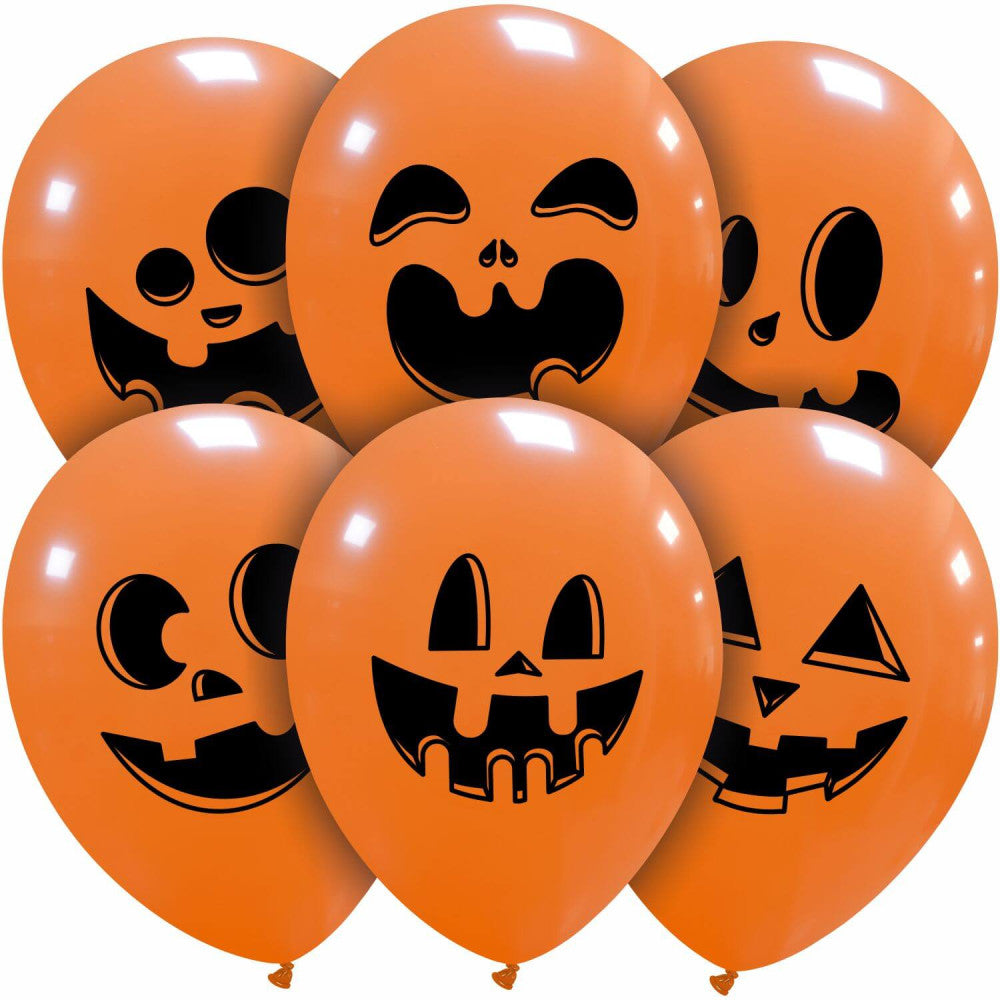 12" Cute Pumpkin Faces (Happy Halloween Print Back) 2 Sided Printed (25 Per Bag) Latex Balloons
