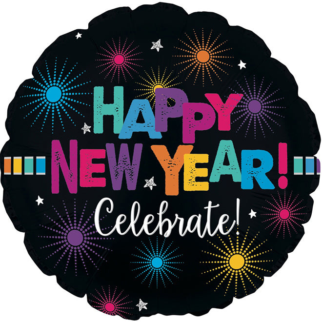 Ballon en aluminium à bordure arc-en-ciel Happy New Year de 18 pouces
