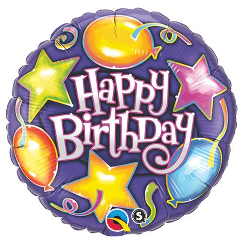 Ballon rond en aluminium de 18 pouces avec étoiles et ballons d'anniversaire