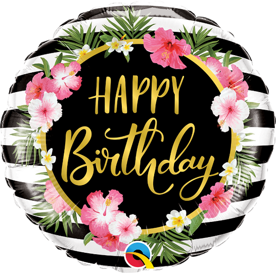 Ballon en aluminium à rayures d'hibiscus d'anniversaire de 18 pouces