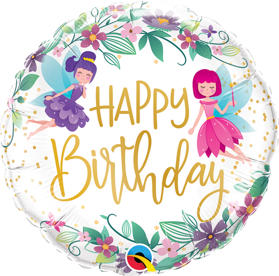 Ballon rond en aluminium de fées de fleurs sauvages d'anniversaire de 18 pouces