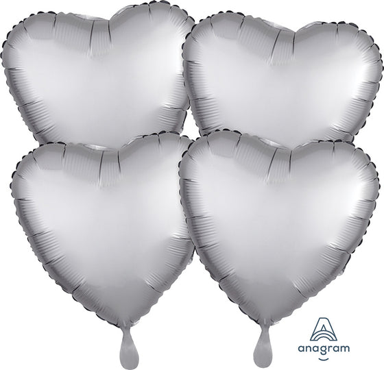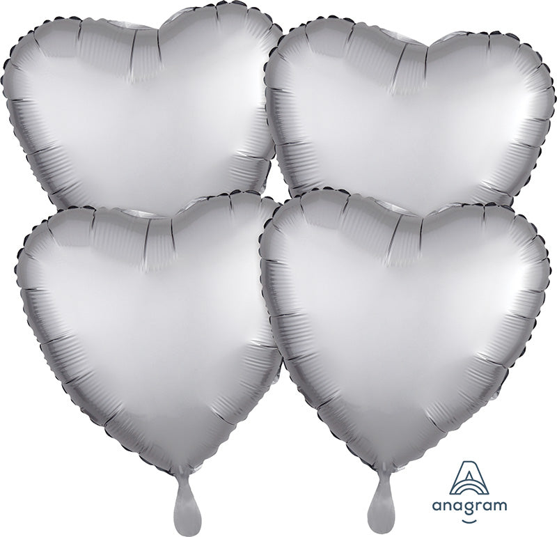 Ballon en aluminium Satin Luxe de 18 po (paquet de 4) cœurs platine