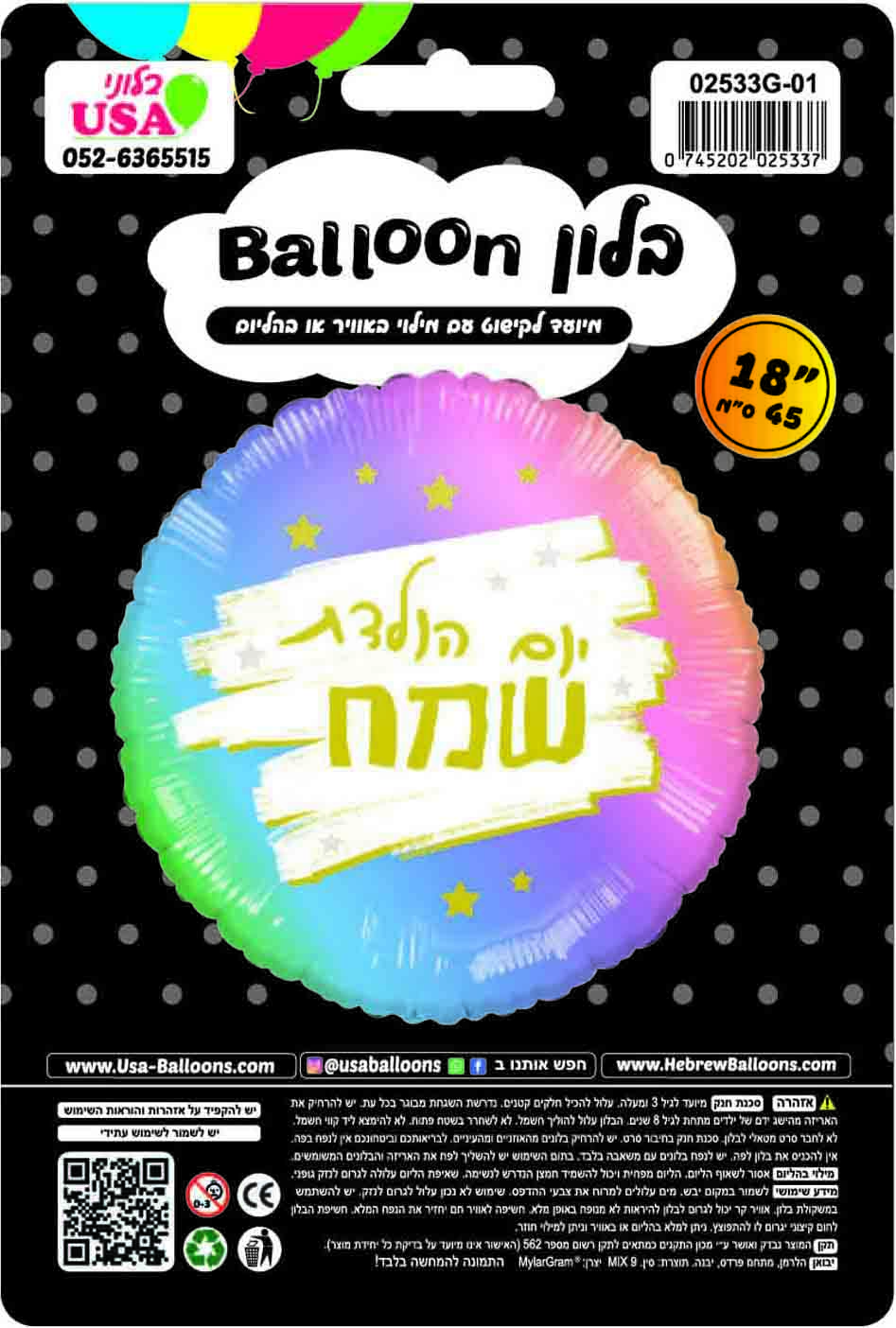 Ballon rond en aluminium blanc arc-en-ciel « Joyeux anniversaire » de 45,7 cm