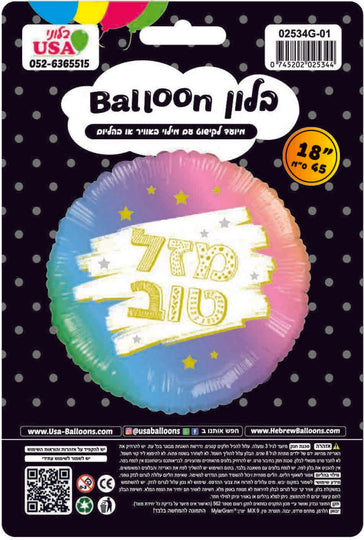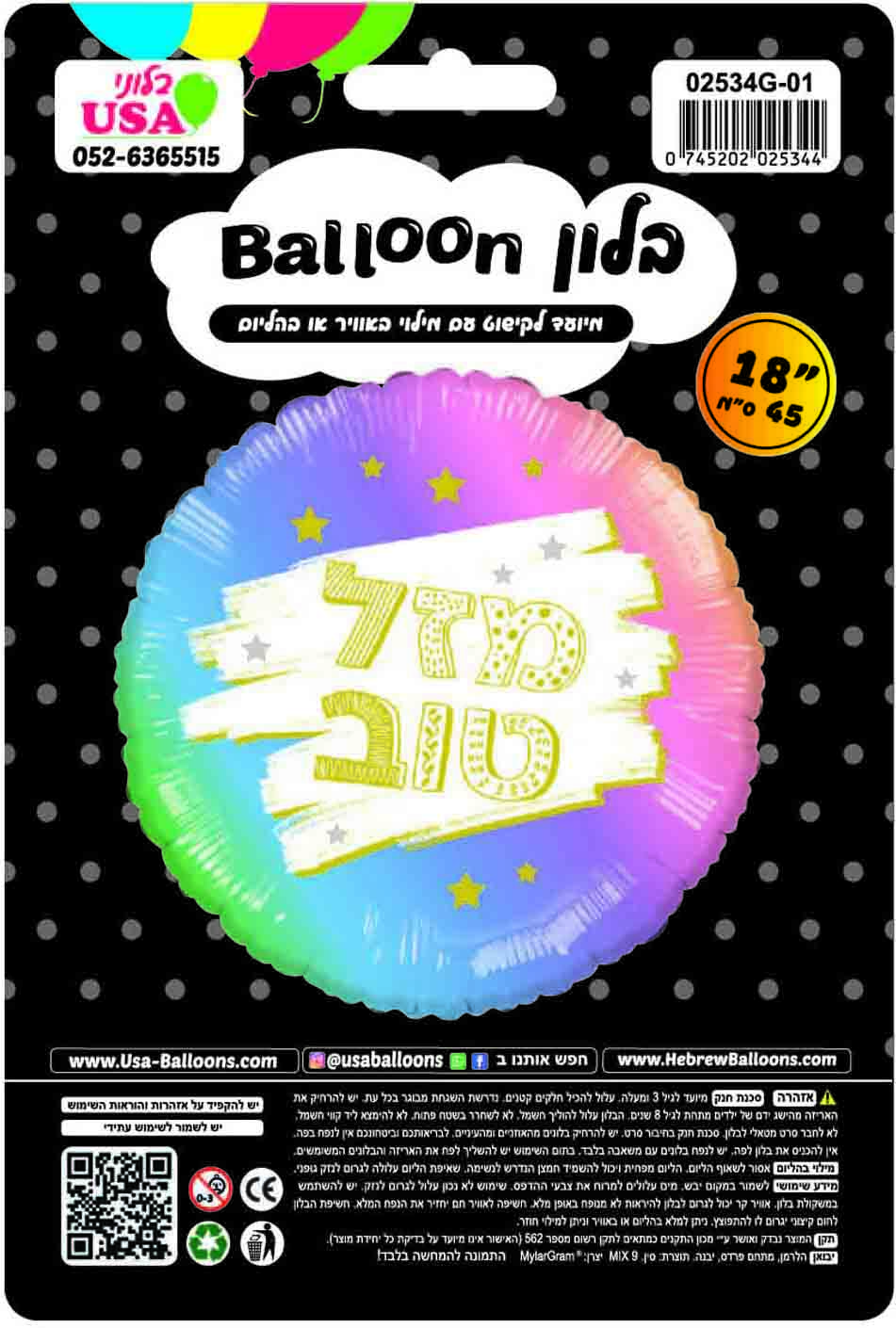 Ballon rond Mazel Tov en aluminium blanc arc-en-ciel de 18 pouces