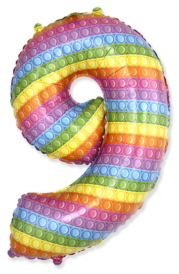 Gonflable jusqu'à environ 26 pouces. Peut être rempli d'air ou d'hélium. Fabriqué par Flexmetal en Espagne. Ballon Pop de taille moyenne numéro « 9 ». Ballon en aluminium coloré.