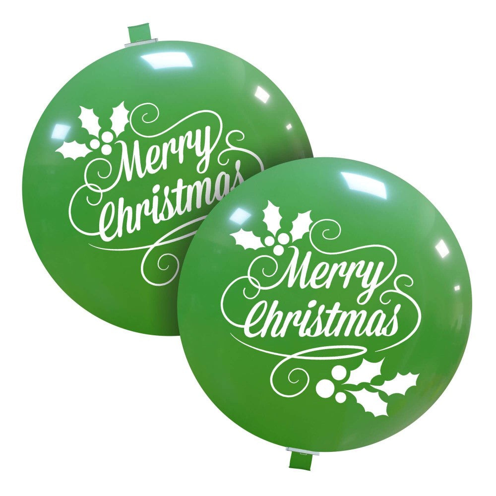 Ballons en latex imprimés de marque Cattex, 32 pouces, vert houx de Noël, cou vers le bas, 2 faces (1 par sac)